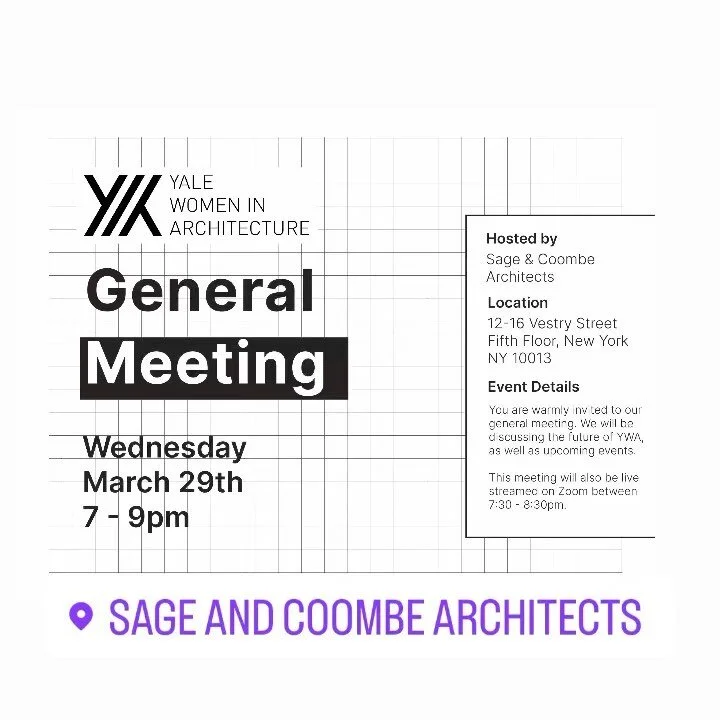 Please join us for our upcoming General Meeting, this event will be discussing the future of Yale Women in Architecture, as well as upcoming events.